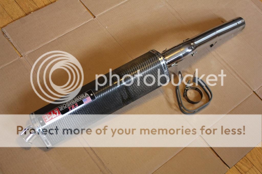 Just as the title states, GEN 1 Full Yoshimura Exhaust System including: Headers, 4 into 1 Collector, Mid-Pipe, TRS Tri-Oval Carbon Fiber Canister, and all mounting clamps, springs, and rivets. As you may or may not know, Yoshi no longer manufactures this set-up and there are few options for a full system remaining for the GEN 1. Everything is in excellent condition, polished, and ready to install. I believe the photos will speak for themselves!