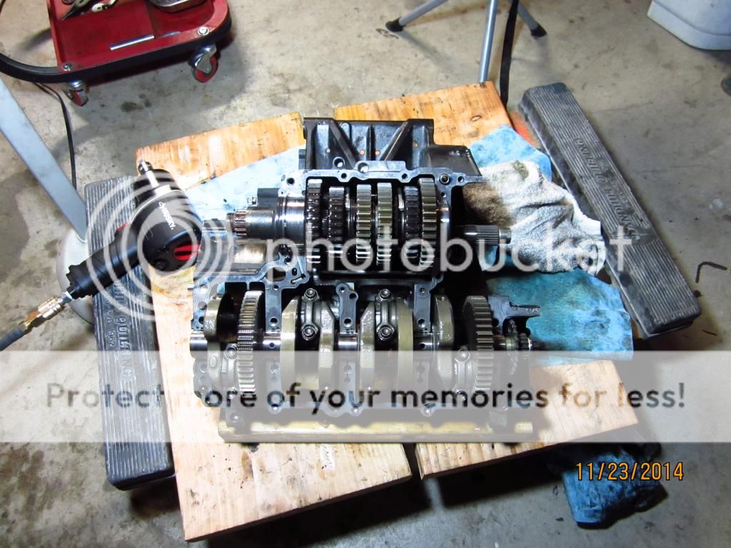 Dropping the engine was a real chore and we struggled with a few things along the way because of our learning curve. I could now drop an FZ1 engine in an afternoon. It's mostly just a bunch of busy work disconnecting things. Having a pneumatic impact gun helps A LOT with disassembly. I don't think I would have been able to get the self-locking nuts off of the engine mounting bolts without my impact gun. It should have been necessary for removing the nut on the primary sprocket as well but for some reason on my bike it was already loose!!!!!!!! I simply bent up the metal tabs with a screw driver and it backed off by HAND!!!! Not normal..........this should have taken an impact gun to remove. In any case, I wouldn't recommend dropping the engine just for a valve job unless you're facing a long cold winter and have noting better to do.